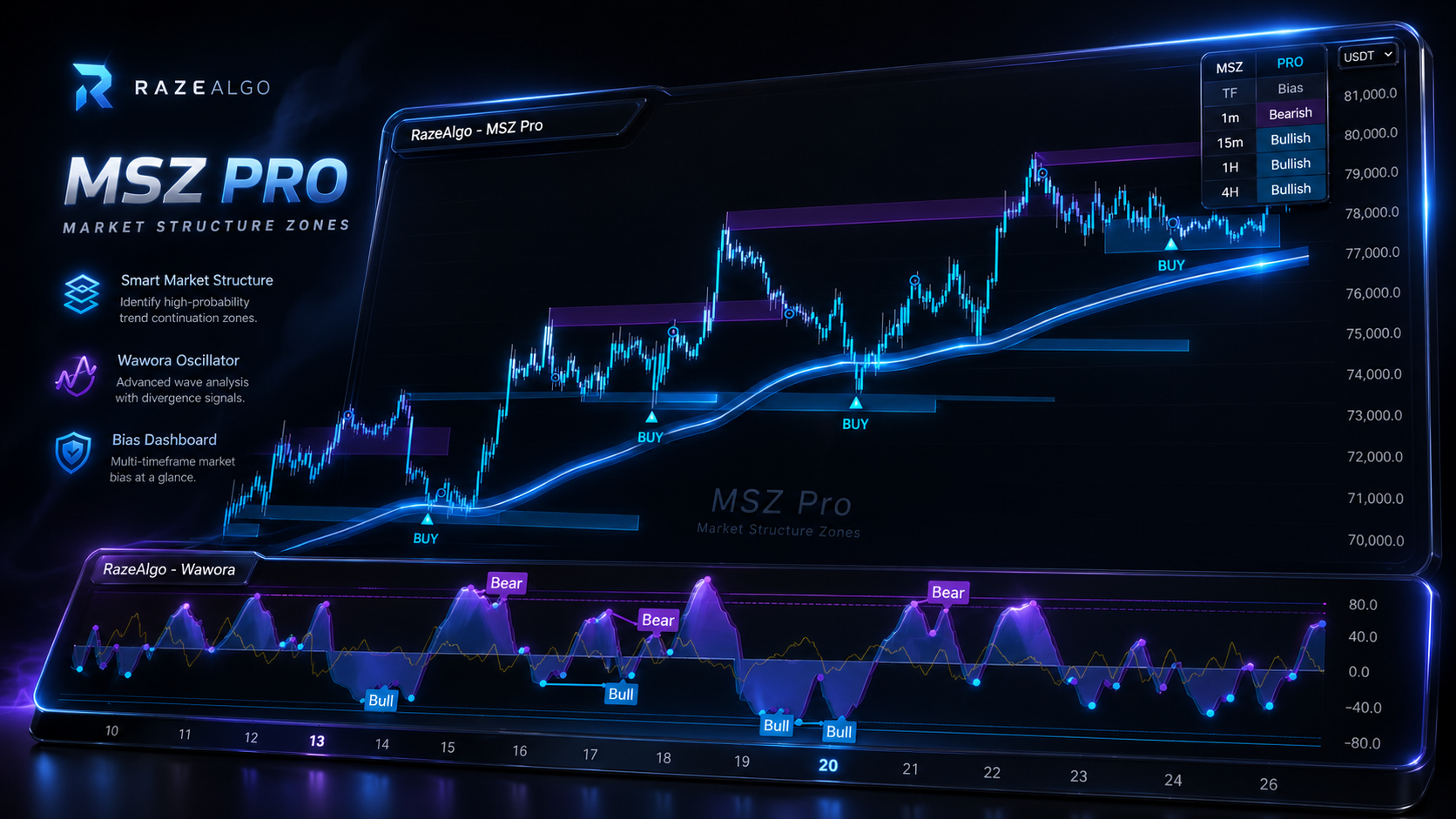 Discover clean market structure zones, trend bias, smart candle overlays, multi-timeframe dashboards and precision setup tools built for modern traders.